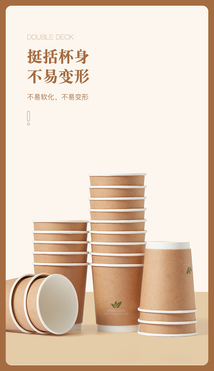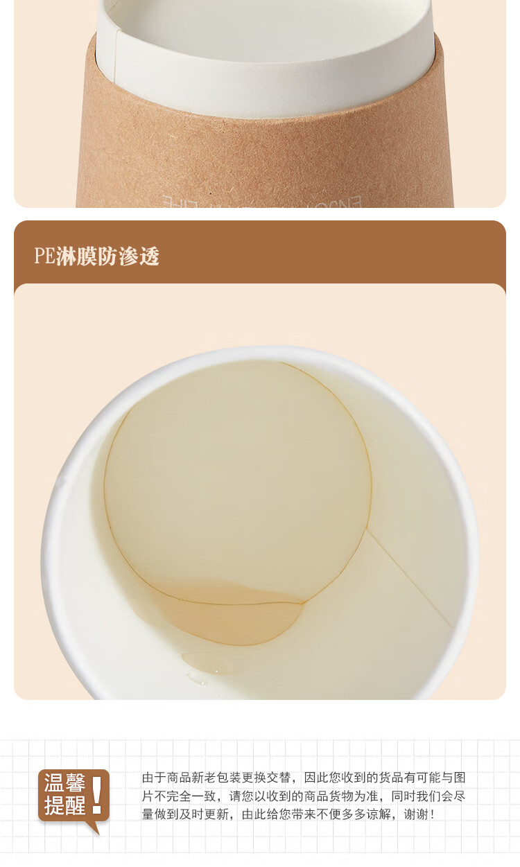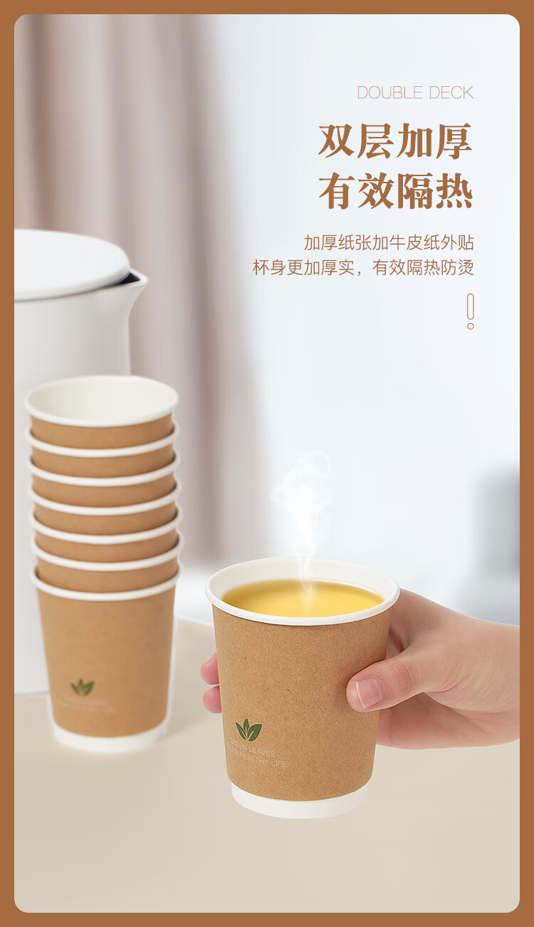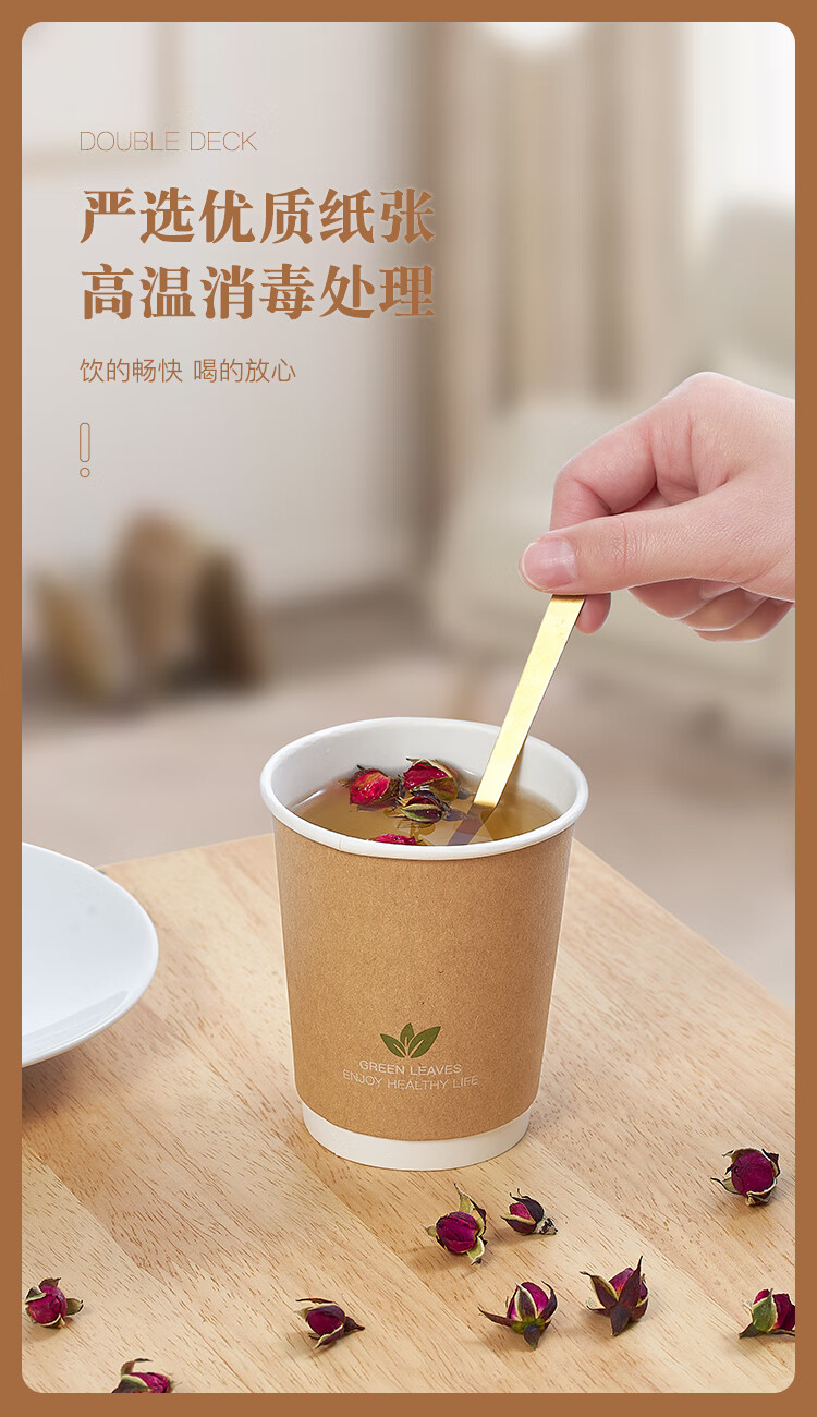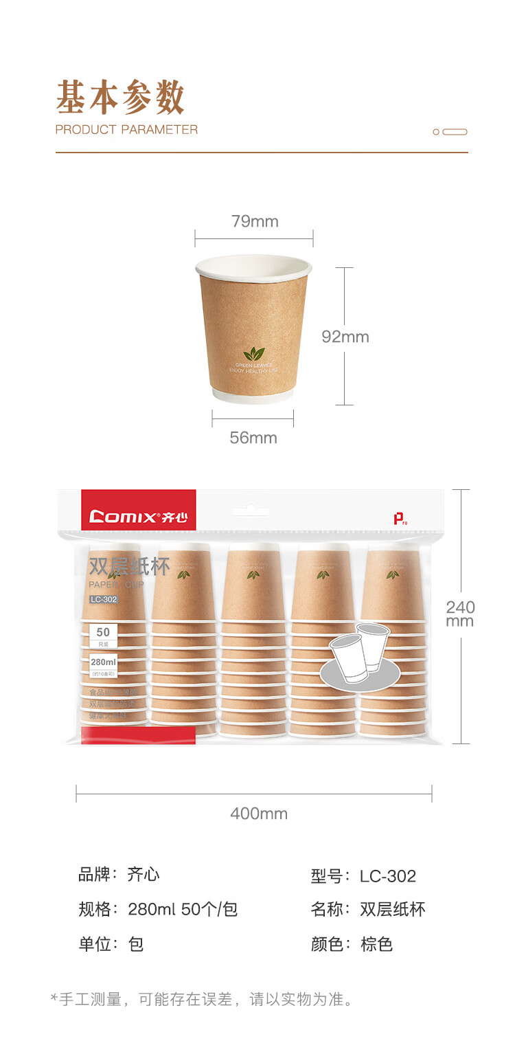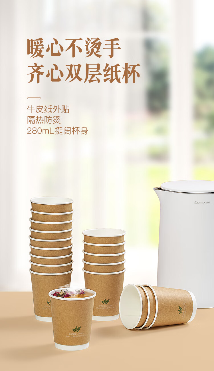 齐心(Comix)一次性杯子 纸杯/水杯 牛皮纸外层 双层加厚贵宾接待用办公用品