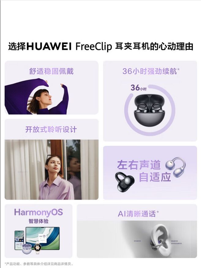 华为FreeClip 耳夹耳机 开放式无线蓝牙耳机 舒适稳固佩戴/长续航